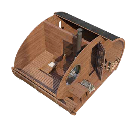 This stunning large Oval Sauna boasts long 2-tiered benches perfect for lounging, and has enough room for up to 8 bathers. It also features a large window in the front wall and a 3-window tempered glass door, plus a porch with 2 benches ideal for cooling off. The Oval design offers a much smaller heating area than any rectangular sauna for maximum energy efficiency. This model is Thermowood treated for superior structural integrity.